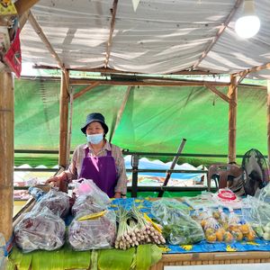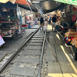 赤ちゃん連れで初めてツアーに参加しましたが、安心して楽しめました。水上マーケットは朝早めの時間だったため混雑もなく、押し売りなどもなく落ち着いて観光できました。商品は似たようなものが多かったので、名物のココナッツアイスだけをいただきました。その後訪れたワット・バーンクンは人が少なく、菩提樹に包まれた本堂がとても印象的で静かな雰囲気に癒されました。メークロン市場では列車が出発する場面を食堂で昼食をとりながら見ることができ、迫力満点でした。列車通過後は一気に人が減り、市場散策やマッサージも楽しめました。赤ちゃん連れの場合、列車通過時の混雑には注意が必要です。帰路の渋滞も心配されましたが、スムーズに進みナイトマーケットの1時間前に到着。全体を通して満足度の高いツアーでした。