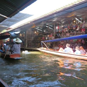 アンパワー水上マーケットでは、写真で見たような船数はなく、閑散としていたのが残念でした。夜になるにつれて船の数は増えましたが、どれも観光客が乗っているボートで、食べ物を運んでいる船は全然なかったです。スピードボードに乗るときは、幅小さめの木の板をつたって陸から船に乗るので、足の悪い方は無理かもしれません。