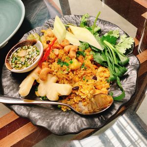 「TheDeck」の昼食は、豚肉入りバジル炒め(目玉焼き乗せ)を注文しましたが、かなり辛くて食べられませんでした。ドリンクを頼みましたが、サービス料もとられ、高額でした。。