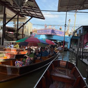 赤ちゃん連れで初めてツアーに参加しましたが、安心して楽しめました。水上マーケットは朝早めの時間だったため混雑もなく、押し売りなどもなく落ち着いて観光できました。商品は似たようなものが多かったので、名物のココナッツアイスだけをいただきました。その後訪れたワット・バーンクンは人が少なく、菩提樹に包まれた本堂がとても印象的で静かな雰囲気に癒されました。メークロン市場では列車が出発する場面を食堂で昼食をとりながら見ることができ、迫力満点でした。列車通過後は一気に人が減り、市場散策やマッサージも楽しめました。赤ちゃん連れの場合、列車通過時の混雑には注意が必要です。帰路の渋滞も心配されましたが、スムーズに進みナイトマーケットの1時間前に到着。全体を通して満足度の高いツアーでした。