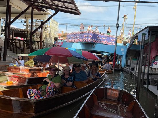 早朝に出発し、線路市場、水上マーケットを観光し、途中ホテルに戻って休憩、ディナークルーズという盛りだくさんのツアーでしたが、どこも大満足の一日となりました。ガイドさんもドライバーさんも親切で観光地以外のタイの情報も楽しく話してくれました。