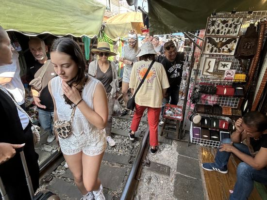「パォーーーン!」という警笛が鳴った瞬間、さっきまでお店だった場所から屋根や商品が魔法みたいに消えていくんです。 目の前をかすめる列車の近さは、まさにスリル満点! 通り過ぎたら10秒で市場に戻る、地元の方々の神ワザ手際に拍手でした👏