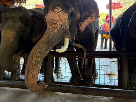 朝から晩で、郊外フルコースですので、ハードスケジュールでしたが、他の参加者の方とも仲良くなれ楽しかったです。メークロン市場で買い物をする時間がなかったのが、非常に残念でした。電車の通過は、迫力満点!!まさに、これを見たかった!!と大満足!!ガイドさんがベストな場所を確保してくれて、嬉しかったです♪中国からの観光客で、マナーがなってない人が目につき、不快だったのも、残念。水上市場までは、高速ボートで移動するので、手漕ぎボートに乗り換える欲がなくなり、地上で市場を回ったのですが、逆にゆっくり値引き交渉する時間も取れ、良かったかもです。アユタヤも主要箇所のみなので、無駄に炎天下の中、歩くことなく、良かったです。本腰入れてアユタヤを見学したい方には、物足りないのかもしれません。象乗りは、揺れます(笑)写真撮るのが大変なぐらい、揺れます(笑)象サンの背中に椅子を乗せていて、それに乗るのが、象サンに申し訳ない気持ちになります。乗せてくれてありがとうでした。早朝出発なので、移動中を睡眠時間に当てましたが、道が悪く、運転手さんも、なかなかのスピードを出すので、寝れません。。。首が持っていかれたと思うぐらいの衝撃が走ります(笑)それも、楽しんだもの勝ちです(笑)