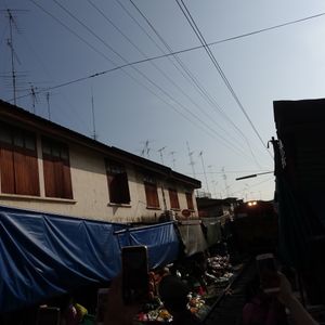 車中からメークロン行きの列車を眺めるスマホをかまえた大勢の観光客にびっくりでした。たいへんおもしろいでした。