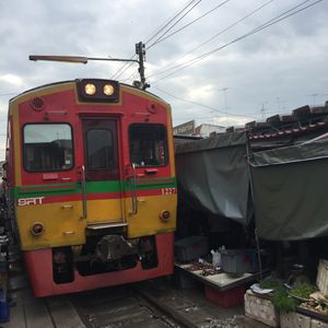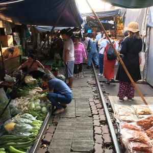 メークロン線路は見学だけでは無く乗車して市場では電車内から線路上の観光客とハイタッチとっても楽しかった 線路ギリギリに露店のお店が並び撤退と開設が瞬時に営業 最高の思い出となりました
