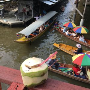 水上マーケットでは、追加200バーツを払って船に乗りましたが、ゆったりと異国間を味わえました!60バーツ?のココナツの容器に入ったらココナツアイスクリームだけ購入して船の上で食べました!