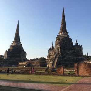 次はアユタヤ!遺跡はとても広い敷地です。のんびり鑑賞。そして象乗り体験。かなり揺れます。若干ビビりました。