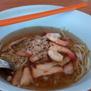 ランチのソンブーンはプーパッポンカリーだけでなく、トムヤンクン、空芯菜、エビすり身揚げまで付いて、食べきれないほど。