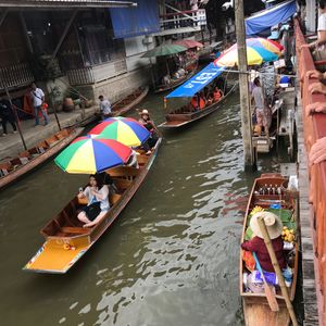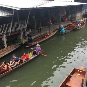 行きは朝早かったのですがホテル玄関まで送迎していただき、バスでぐっすり眠れました。着いてすぐにモーターボートに乗り、手漕ぎボート場まで移動。モーターボートがアトラクション並みのスピードで、スリル満点でした!水上マーケットは大混雑で、人気ぶりが伺えました。水上マーケットは観光地って感じでしたが、手漕ぎボート場まで移動するモーターボートは、水上で暮らす現地の方の生の暮らしを見ることができました!ココナッツアイスは見た目も可愛くて味も美味しかったのでおすすめです。