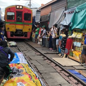線路市場は人でイッパイでしたが電車到着時の品物を引っ込める瞬間やまた出すところがみれたし、水上マーケットも楽しめました。象の親子も可愛かったし、アユタヤ観光もでき、腰痛持ちなので、自分たちでは1日では絶対に回れない盛りだくさんな内容で、楽しかったです。