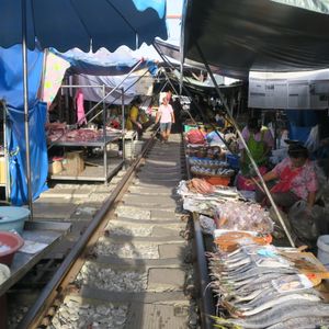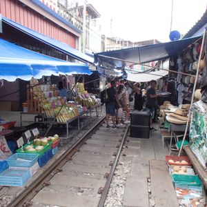 メイクロン線路市場は1時間半ほど前に着きましたが、市場を見て回っているとすぐに時間が過ぎました。市場の価格は良心的でした。電車が来た時に一瞬で市場が変化していく様は一見の価値ありです。
