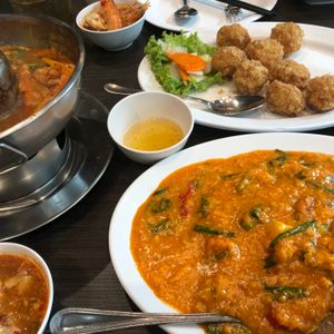 お昼ご飯は蟹カレー、トムヤムクン、空芯菜、揚げ物でおいしかったです。ベテランガイドを選択しました。