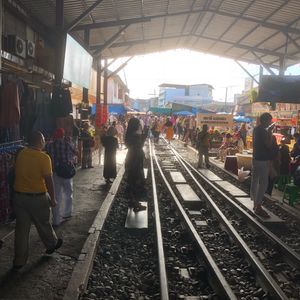 メークロン線路市場は他の方の口コミ通り人が多く、大混雑で列車が通る時は危険なくらいでした!散々待って人に揉みくちゃにされた結果、ちゃんと見れませんでした。ツアー内容が悪いとかではないです!でも、線路で列車を待つより列車に乗って見たほうが絶対良いと思います。