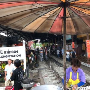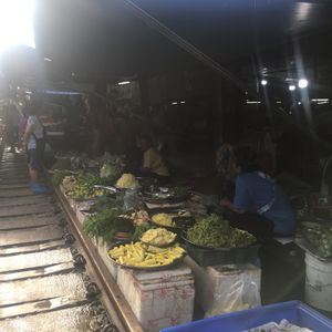行った時期がお盆休みだったので、有名な観光地は日本人で激混みでした。メークロン線路市場も激混みで、列車の通過するときにはカメラを構えた人・人・人・人。屋台を手際よく片付けるとろこは全く見えませんでした。列車通過後も踏み切りは大混雑で、ひどい渋滞が起きていました。