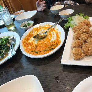 ソンブーンでのカニカレーも、カレー以外にトムヤムクンやエビ団子揚げ、空芯菜炒めなど量はたくさんでお腹いっぱいです。