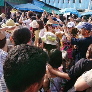 メークロン市場もすごい観光客の数で写真を撮るのも一苦労。