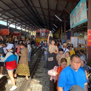 メークロン線上市場は、沖縄の公設市場のような雰囲気で楽しかったです。電車が来るとき、写真を撮るのは結構大変です。注意されても、なかなか線路のギリギリの場所から離れず、挙げ句、将棋倒しみたいに、なっている観光客がいました。水上マーケット、集合場所近くの値札がついているお店、値切ったら半額にしてくれました。ココナッツシュガー、軽食のラーメン美味しいです。