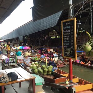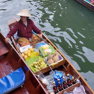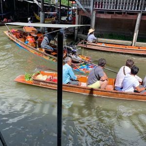 朝6時アソーク駅のマクドナルド前に集合、すでにガイドさんがいて、無事合流。ベルトラさんだとすぐ分かります、向こうもすぐ分かります。もう一組を迎えにホテルに向かい、少人数のツアーでした。一緒に参加した方との会話も楽しかったです。タイ人のガイドさん、よく喋るおばちゃんでした。バスの中でも色んなこと教えてくれました。ツアーの参加者とガイドさんが良かったので凄く楽しかったです。この辺りは当たり外れがあると思います。市場で朝ごはんとフルーツを買うのがいいと思います。駅の奥に現地の人?(観光客じゃない)が沢山食べてたカオマンガイのお店でご飯食べました。そして、市場の臭いがきついので潔癖な方には向かないです。ココナッツファームはトイレ休憩って感じで同じようなツアーの日本人が沢山いた。水上ボートはジャングルクルーズみたいでした。私はこれが一番楽しかったです。水上マーケットの手漕ぎボートはお土産を売りつけてくる感じと売ってるものがその辺で売ってるTheお土産感が苦手でしたが、まぁこれは仕方ないかと思います。お土産はウィークエンドマーケットで買った方が楽しいと思います。観光地のしつこいお土産屋の雰囲気が嫌いな人は手漕ぎボートは乗らない方がいいと思います。200THBが高く感じる。乗る価値はあるとは思いますが。ラーメン美味しかったです。楽しい時間を過ごせました。