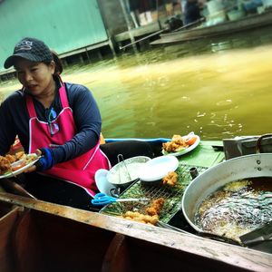 水上マーケットは料金追加で手漕ぎボートに乗れて実際に水上で買い物できます。舟でチキンを揚げながら売ってたりしてて面白かったです。