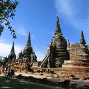 自分は初めて、家内は30年ぶりのタイ旅行でした。前日にバンコク市内観光をしたので、翌日は郊外の観光ということで、全部が詰まった欲張りなツアーを選択しました。アユタヤには家内は昔行ったということでしたが、世界遺産に登録されてから大変きれいに整備されていたようでびっくりしていました。ガイドさんはベテランの方で、昔の話もよく知っておられて家内も喜んで聞いていました。メークロン市場は、電車が通る時も遮断機の中で写真をとる外国人が多くて、上手く写真が取れずに残念でした。水上マーケットの中は平日のためか物売りの船が少なかったですが、高速ボートはアトラクションの様で面白かったです。乗る価値あります。アユタヤはとてもいい天気で暑すぎましたが、楽しい一日を満喫しました。コストパフォーマンスは良いと思います。