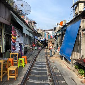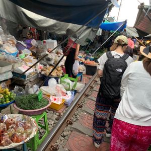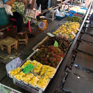 線路市場は凄い人で電車がくる時間にはベストポジションを奪い合うような雰囲気ですが、日本ではありえない光景でした。待っている間にマンゴなどを食べれますし、雑貨も値段付きで売っていますし、ナイトマーケット位の値段でした。