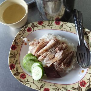 ココナッツジュース・カオマンガイなど朝食を取って電車を待つ。