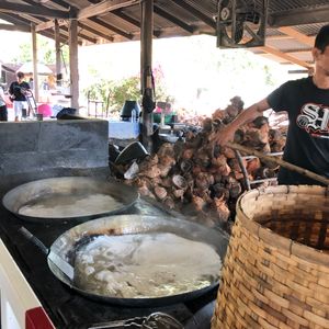 その後、水上マーケットへ行く途中のココナッツファームを15分ほど見学後、水上マーケットへ。