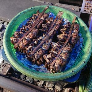 並んでいる商品が、他の市場とは違い魚を大胆に捌いていたり、カエルやナマズが売っていたりととても生活感があって面白かった。列車が来るときに片付けたり、元に戻したりする様子はテレビでみた通りでした。