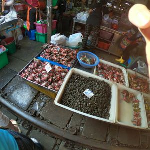 メークロンでは、集合場所にされたところだと、線路の市場の動きがみえなくて、意味があるのかわからなかった。
