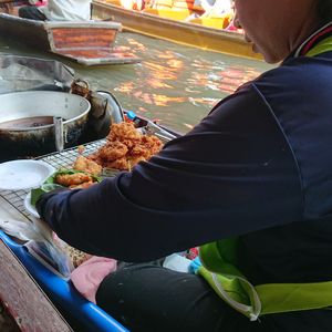 7人乗りぐらいの船に乗って、水上マーケット内を周回します。