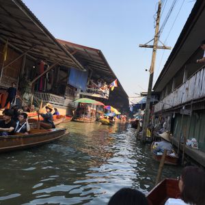 まだ日も上がらない6時にホテルをピックアップしてもらい、メークロン線路市場へ。他のツアーの客も多く、線路の市場を見るのも一苦労でしたが、ガイドさんがあらかじめフォトスポットを教えてくれていたので電車の通過する写真がきちんと取れました。その後、水上マーケットへこちらも他のツアー客で満杯でまるでアミューズメント施設のようで生活の場ではなくて観光客向けの施設でした。昼食にバンコクへ戻り、その後アユタヤに移動、象のりは10分ではなく7分なので園内の一部を歩くだけですが満足です、象へのおやつあげはひとかご50バーツですのでぜひ象にあげてください。アユタヤでは4か所を見学、バンコクよりも温度が高いのでじっくりと見てまわると日差しでやけどしそうになるのでそうそうとバスに戻りました。アユタヤからバンコクへ戻りホテル近くで降ろしてもらったのが18時頃なのでまるまる半日の過酷なツアーですが時間のない人にはぴったりのツアーです。