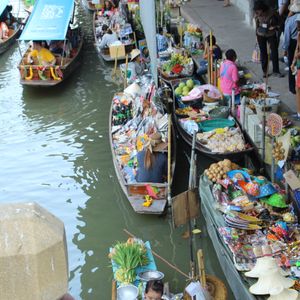 タイ・バンコクの水上マーケットでは、船で商品を売買する昔ながらの市場を見学できます。果物や雑貨を積んだ小舟が運河を行き交う活気ある様子は、タイらしい雰囲気がいっぱい。バンコクから行ける市場は主に3つあり、車で約2時間以内の場所にあります。バスや電車で行けますが、本数が少ないためツアー参加をおすすめします。 ■ダムヌンサドゥアック:毎朝開催の歴史ある市場。規模は一番大きく、早朝から小舟が行き交い、午前中が最も賑わいます。手漕ぎボートに乗って買い物を楽しむことも可能。船着き場からスリル満点のエンジンボートに乗って行きましょう。 ■アンパワー:週末限定で開催され地元民に人気。木に集まった無数の蛍を見られる午後ツアーが有名。 ■アユタヤ:2010年に誕生した新しい市場。連日のように地元タイ人で賑わっています。 現地ツアーを利用すれば、行き方を調べることも不要、自力で行くよりも便利です。格安ツアーや象乗りとセットのツアー、歴史などが学べる日本語ガイド付きツアー、一人旅に嬉しい割増料金なしや到着日に参加可能な空港お迎え付きツアーなどバラエティ豊かな商品をご用意してお待ちしています。