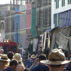 例えば、大混雑のメークロン線路市場では当ツアーのガイドさんは、踏切のところで簡単な市場の説明と集合時間・場所の説明があったくらいだけでしたが...