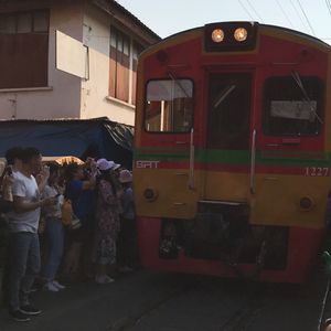 メークロン市場は電車で向かうのですが、ガイドさんが電車の最後尾に連れて行ってくれて、次々と店が閉まっていく瞬間を見ることができます。めちゃめちゃ不思議な光景で、みんなが「テレビのままだ〜」と興奮していました。