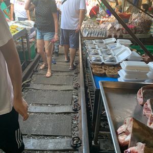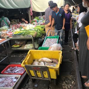 午前中に二つの市場を見ることができるので良かったです。昼食は物足りない人もいるかもしれませんが、年寄りには適当な量でした。ランチ前に水上マーケットで果物など食べたら充分です。線路市場は駅のすぐ側ではなくて少々奥に入って、線路から少し離れているお店の前はスペースがあり、そこで電車が来るのを待つのが正解です。