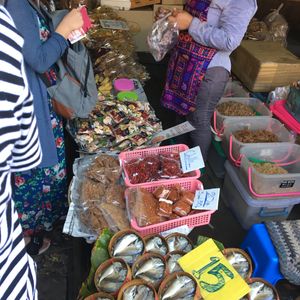 野菜、魚などの生鮮食品から衣服、アクセサリーまで所狭しと商品が並び、タイの人の生活を垣間見ることができました。