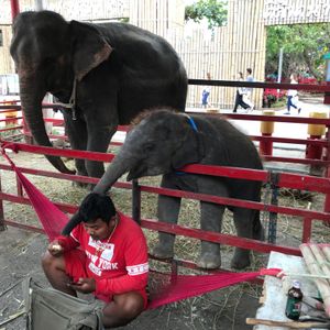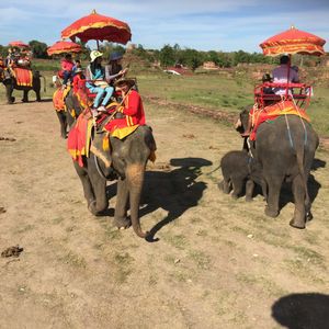 結果大正解!朝早い集合のため、(と行っても7時)行きのバスで爆睡。ココナッツファームで少し休憩してから水上マーケットへ。現地の人の押し売りに負けず笑 欲しいものだけ買う。もちろん値切る。そして、本題の象乗り!赤ちゃんはエルゴでしっかり固定しました。水の中に入るのが一番スリルでした。