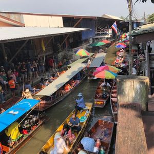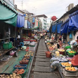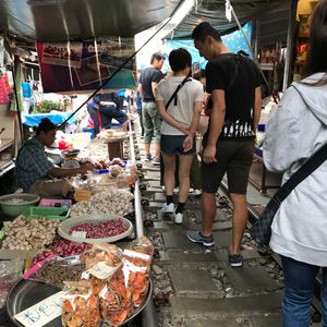 メークロン市場とダムヌンサヌアック水上市場を巡るツアーに参加しました。先に線路市場に向かいましたが、到着したらすでに観光客がたくさんいたので、歩けない状態でした。電車が来る前の、市場を片付ける様子を間近で見たかったのですが、案内されたところは市場の端の方で片付ける様子を撮影することは叶わず電車が通り過ぎる際も、市場との距離感の近さを撮影出来なかったのですごく残念でした。年始だったので観光客が大勢来ることが想定出来たはずなので、もう少し早い集合にしてもいいのでは。お金を払ったのに残念でした。