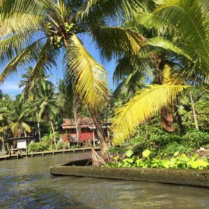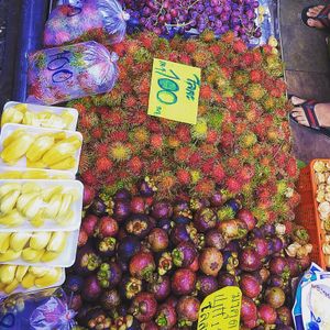 水上マーケットがあり、手漕ぎのボートに乗り換えて、狭い水路の両脇にあるお店に舟を付けてもらって買い物をするという仕組みになっています。