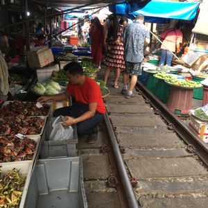 テレビで見た風景を直接見ることができました。メークロン市場では地元の市場の方々の邪魔にならないように自分なりに気をつけていたら、列車が通過するとき、自分の店の敷地内に入れてもらい写真を撮るポジションを確保してもらいました。