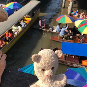 メークロン線路市場で食べたお粥はローカル感満載でとても美味しかったです。水上マーケットはモーターボートに乗った時友達がみずがかかりワンピースを買いました。ここでは手漕ぎの舟に乗らないとゆっくり見れないので乗った方が雰囲気を味わえたかも? カニカレーと空芯菜炒めは子供でも食べられるのでよかっです。トムヤムクンは流石にからかったみたいです。アユタヤは駆け足で回ったので、ゆっくりみたい人はアユタヤ遺跡のみのツアーがおススメですが、さらっと見るだけで良い方はこのツアーはおススメです