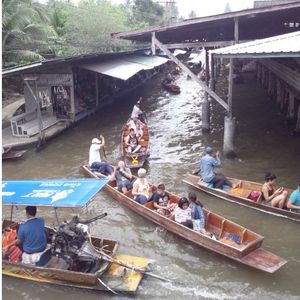 今まで何回かバンコクには行っていますが、ダムナンサァドクのマーケットはまだ1度も行ったことがなく、併せてメークロンの折り畳み市場も見学できるとあって、迷わず申し込みました。どちらも個人ではなかなか行きづらい場所です。当日の参加者は私たち夫婦を含めて3名のみ。 途中のココナツファームやスピードボート、水上市場でのお買い物、全て楽しい体験でした。効率よく回ってくださったので、もう一箇所、首長族の観光村に立ち寄り、おもしろい写真を撮ることができました。地元のラーメンやアイスも食べられて、しかも午後1時にはホテルに戻ってこられたので大変効率の良いツアーでした。おかげで午後は、ホテルのプールでまったりすることができました。ガイドさんも、わかりやすい日本語で、優しくて誠実そうな方でした。有り難うございました。是非お友達にもお勧めしたいツアーです。