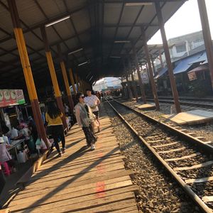 最初にメークロン線に行きました。鉄道が通る時間になると鉄道を撮る観光客でごった返して大変でした。写真を撮りたい方は早めに位置取りした方がよさそうです。朝ごはん食べてない人はガイドさんが教えてくれる鉄道沿いのレストランで食べてもいいと思います。ガパオライスが美味しかったです。