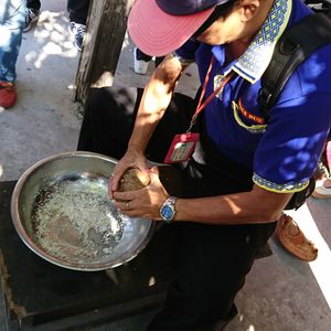 水上マーケットの前の立ち寄りとして、定番と思われるがココナツマーケットへ。期待も全くしていなかったが、ガイドさんがココナツの削り方などを実演してくれたのが面白かった。