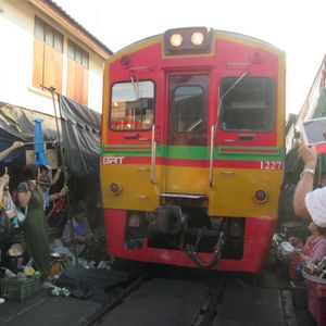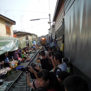 ツアーですが メークロン鉄道は列車がギリギリを通りビックリ 水上マーケットでは迷路のような水路を走り スリル満点でした。