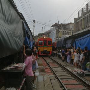 初タイの友人には必ずここに連れて行きます!目の前を通る電車の迫力(日本では線路内に立ち入れないのに流石タイ!)や折りたたまれる屋根など見応えは最高です!