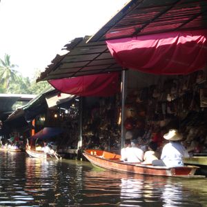 飛行機の関係で空港迎えツアーを探していました。水上マーケットは舟に乗るには別料金でした。舟に乗らなきゃ意味ないですよ。フルーツ狙いでいましたが置物系の店ばかりに捕まります。後ろに乗車した方は揚げバナナ狙いだったのにありませんでした。ガイドさんからは到着前に揚げバナナの話があったのにもかかわらず。