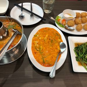 大きなショッピングモールの中のお店です。デパートやショッピングモールに寄る旅程にはしておらず、思いがけなく入ることになりました。経験できたことに感謝です。お料理はコースで量が多く、ソンブーンだけだと思っていたので次から次へと出てきてびっくりしてしまいました。何より、このショッピングモールというかデパートというかが広すぎて、ツアーが終わったら寺院に1つくらい行こうと考えていたところ、施設内をくまなく巡ろうと切り替えてしまったくらいです。文字通りお腹いっぱい、ショッピングもお腹いっぱいで満足です。