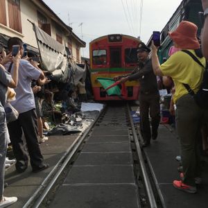 ・メークロン駅で降りてから自由時間がありますが、乗ってきた汽車が折り返して出発し、市場がたたまれるところは見られません。折り返しの出発時間が結構後なので。