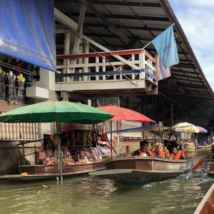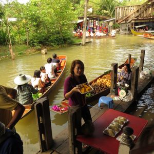 メークロン線路市場は、実際に市場をたたむ様子は人混みで見れませんでした。市場近くで、電車を待っているといいと思います。また、水上アマーケットのマーケットに着くまでの高速船はアトラクションのようで楽しかったのですが、着いてから手漕ぎボートに乗りたいですか?と聞かれ、一組が希望しないと即断したために、解散になってしまい、楽しみにしていた手漕ぎボートには乗れませんでした。行きたいときは、すぐに返事をしたほうがいいです。それが少し心残りなので★4つです。